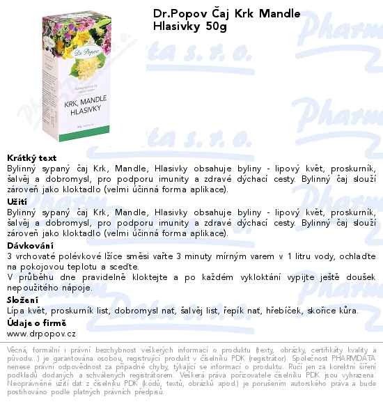 Dr.Popov Čaj Krk Mandle Hlasivky 50g