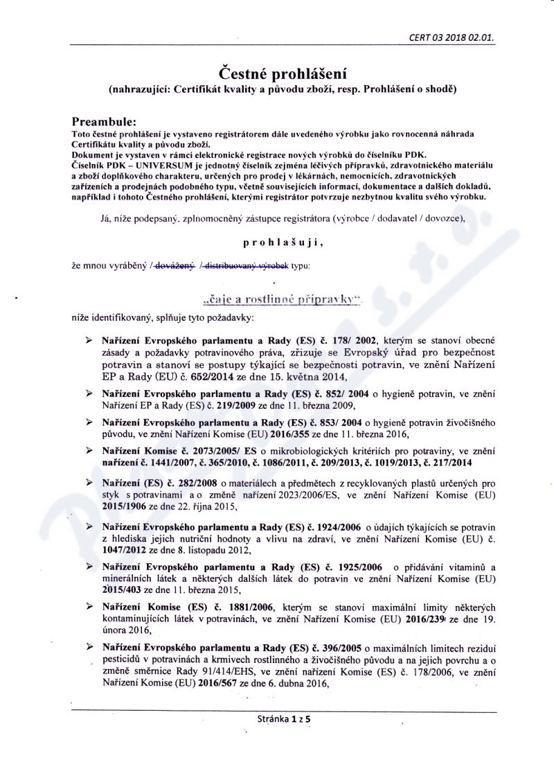 5 strany čestného prohlášení: strana 1, strana 2, strana 3, strana 4, strana 5,