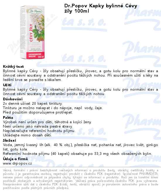 Dr.Popov Kapky bylinné Cévy žíly 100ml