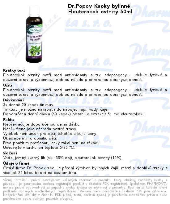 Dr.Popov Kapky bylinné Eleuterokok ostnitý 50ml