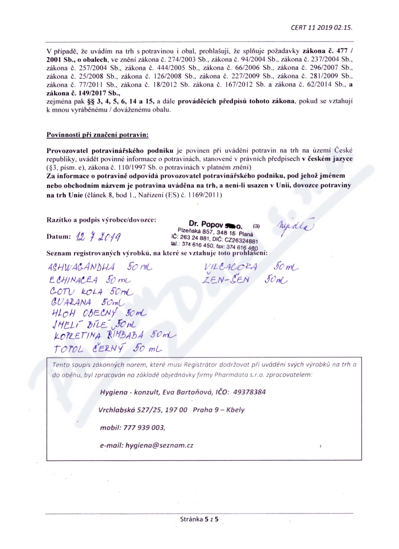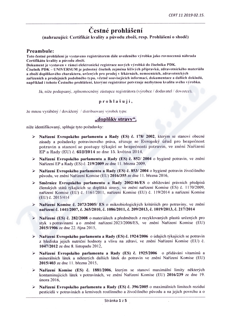 5 strany čestného prohlášení: strana 1, strana 2, strana 3, strana 4, strana 5,