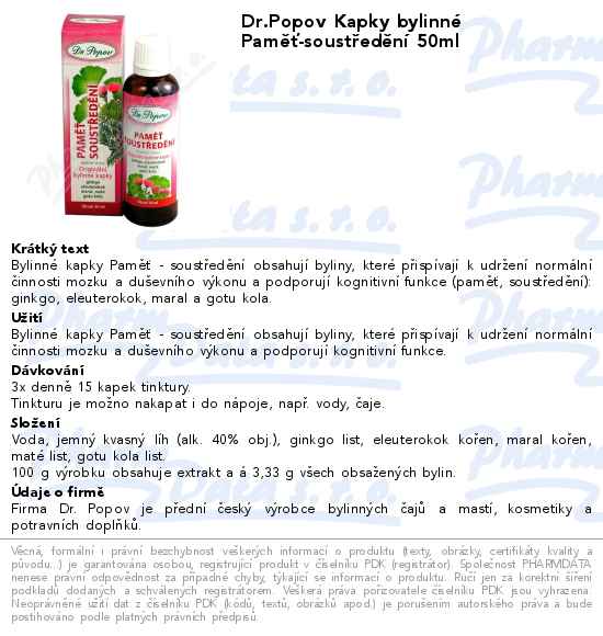 Dr.Popov Kapky bylinné Paměť-soustředění 50ml