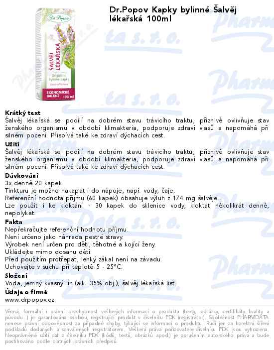 Dr.Popov Kapky bylinné Šalvěj lékařská 100ml