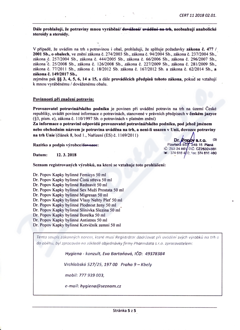 5 strany čestného prohlášení: strana 1, strana 2, strana 3, strana 4, strana 5,