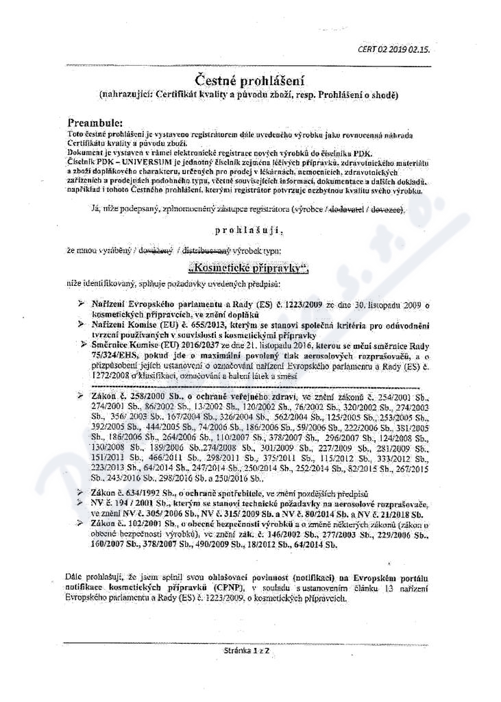2 strany čestného prohlášení: strana 1, strana 2,