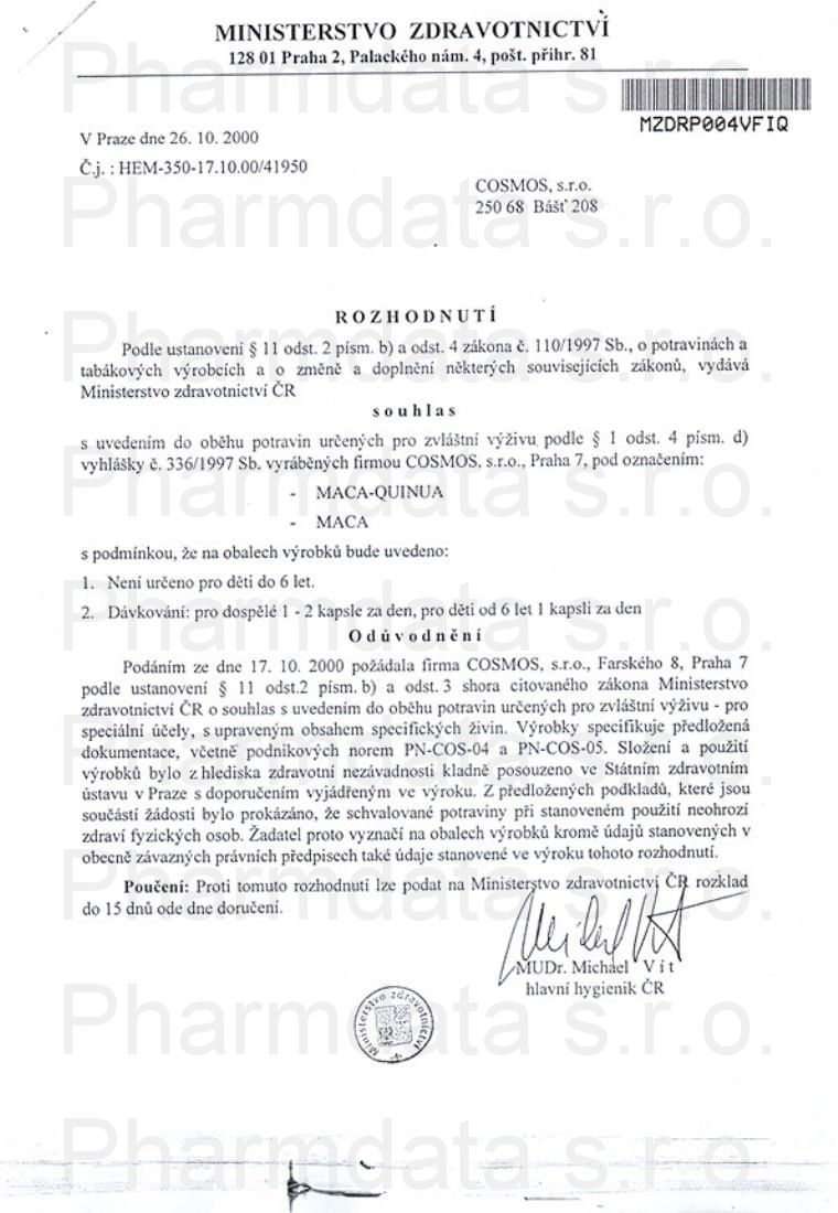 osvědčení hlavního hygienika