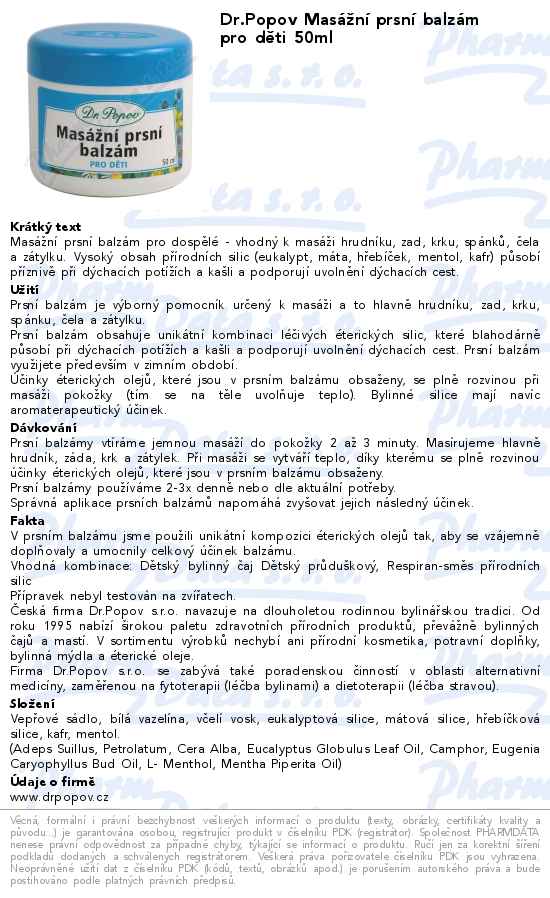 Dr.Popov Masážní prsní balzám pro děti 50ml