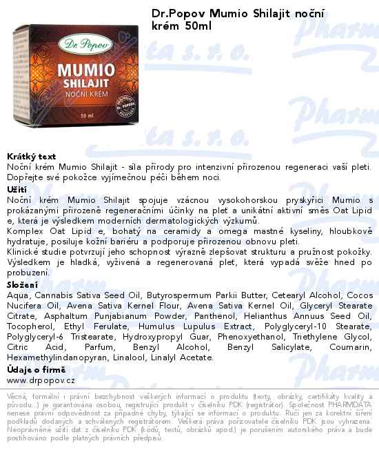 Dr.Popov Mumio Shilajit noční krém 50ml