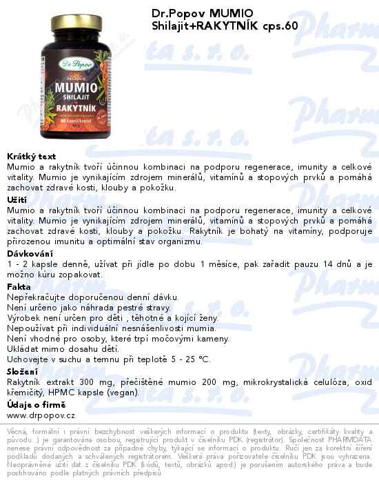 Dr.Popov MUMIO Shilajit+RAKYTNÍK cps.60