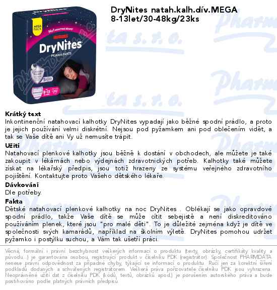 DryNites natah.kalh.dív.MEGA 8-13let/30-48kg/23ks