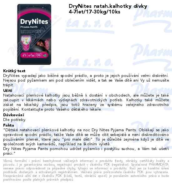 DryNites natah.kalhotky dívky 4-7let/17-30kg/10ks