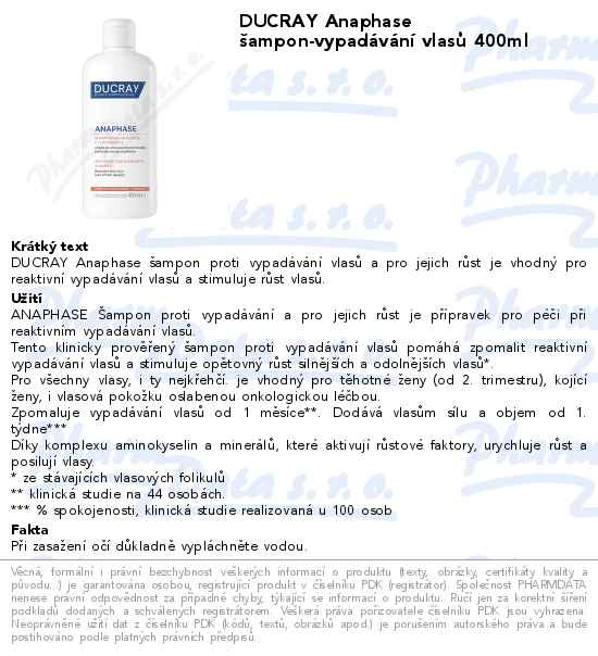 DUCRAY Anaphase šampon-vypadávání vlasů 400ml