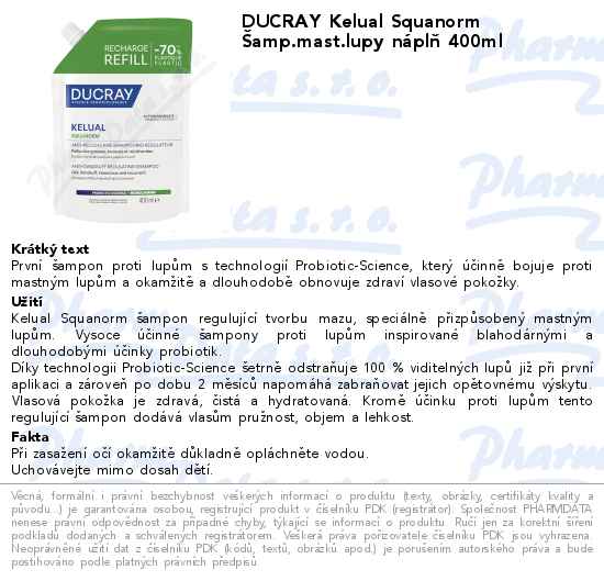 DUCRAY Kelual Squanorm Šamp.mast.lupy náplň 400ml