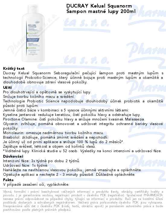DUCRAY Kelual Squanorm Šampon mastné lupy 200ml