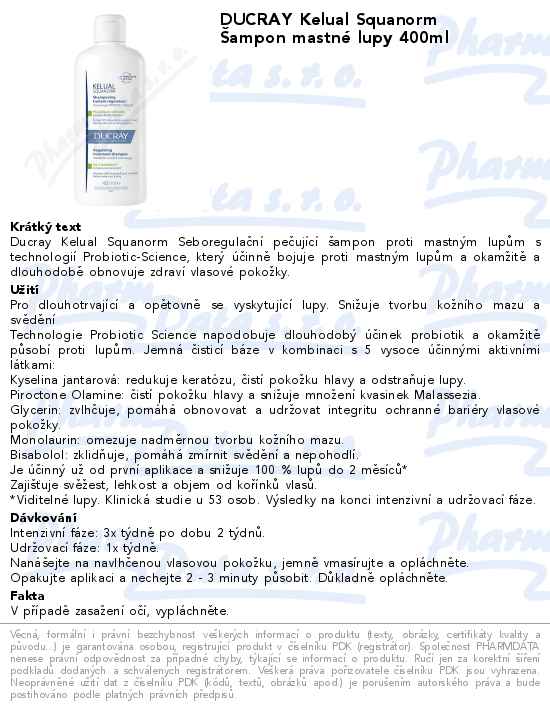DUCRAY Kelual Squanorm Šampon mastné lupy 400ml