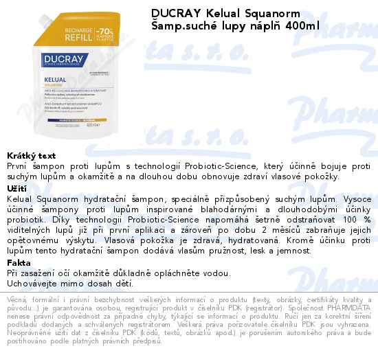 DUCRAY Kelual Squanorm Šamp.suché lupy náplň 400ml