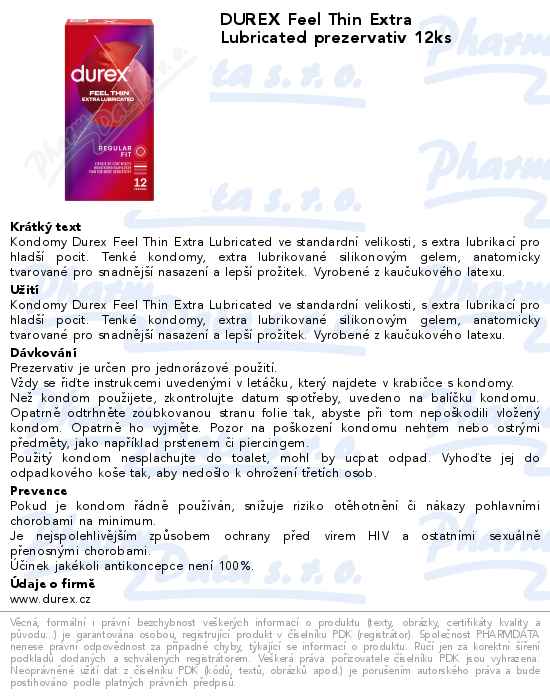 DUREX Feel Thin Extra Lubricated prezervativ 12ks