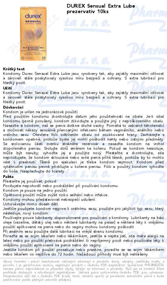 DUREX Sensual Extra Lube prezervativ 10ks