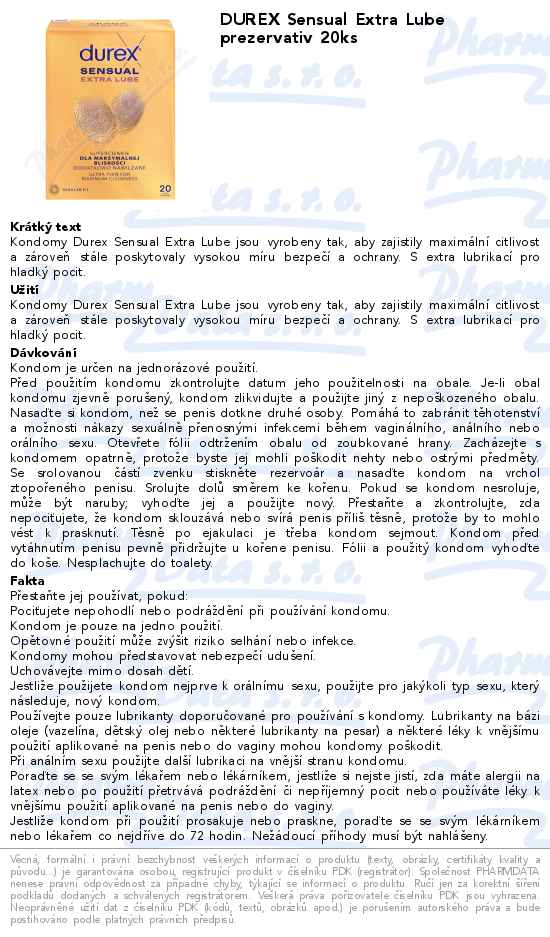 DUREX Sensual Extra Lube prezervativ 20ks