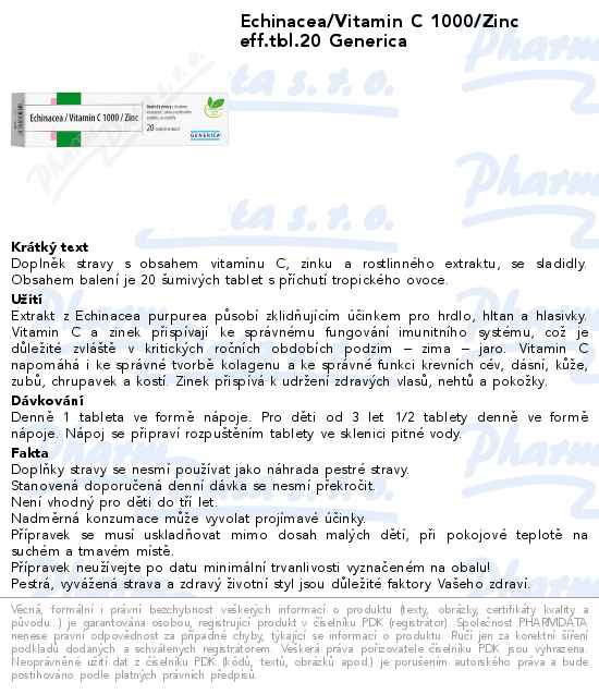 Echinacea/Vitamin C 1000/Zinc eff.tbl.20 Generica