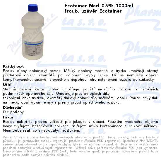 Ecotainer Nacl 0.9% 1000ml šroub. uzávěr Ecotainer