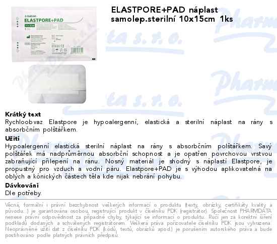 ELASTPORE+PAD náplast samolep.sterilní 10x15cm 1ks