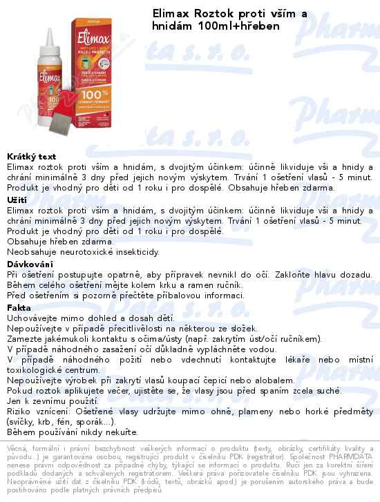 Elimax Roztok proti vším a hnidám 100ml+hřeben
