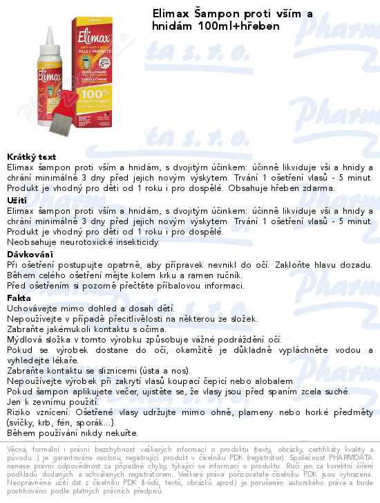 Elimax Šampon proti vším a hnidám 100ml+hřeben