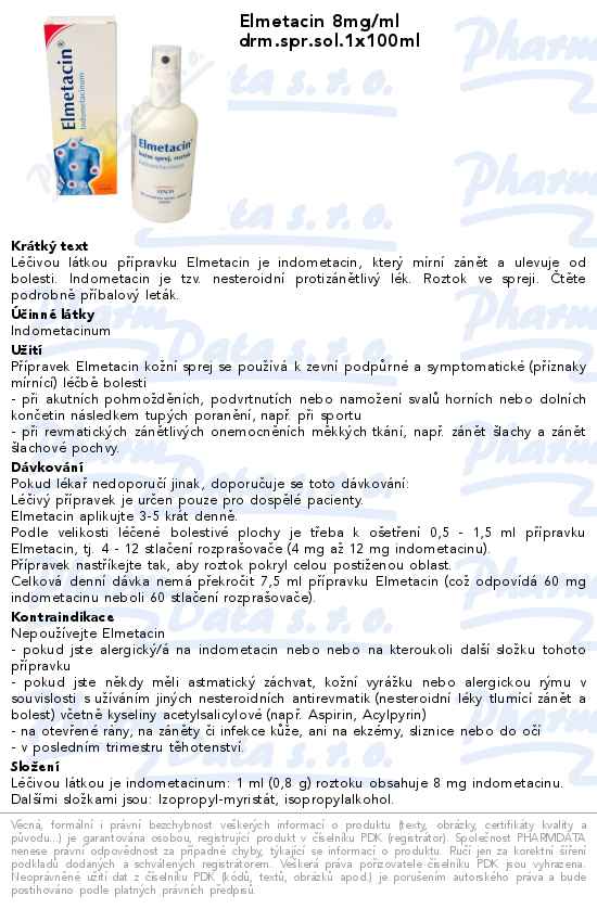 Elmetacin 8mg/ml drm.spr.sol.1x100ml