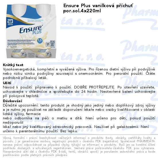 Ensure Plus vanilková příchuť por.sol.4x220ml