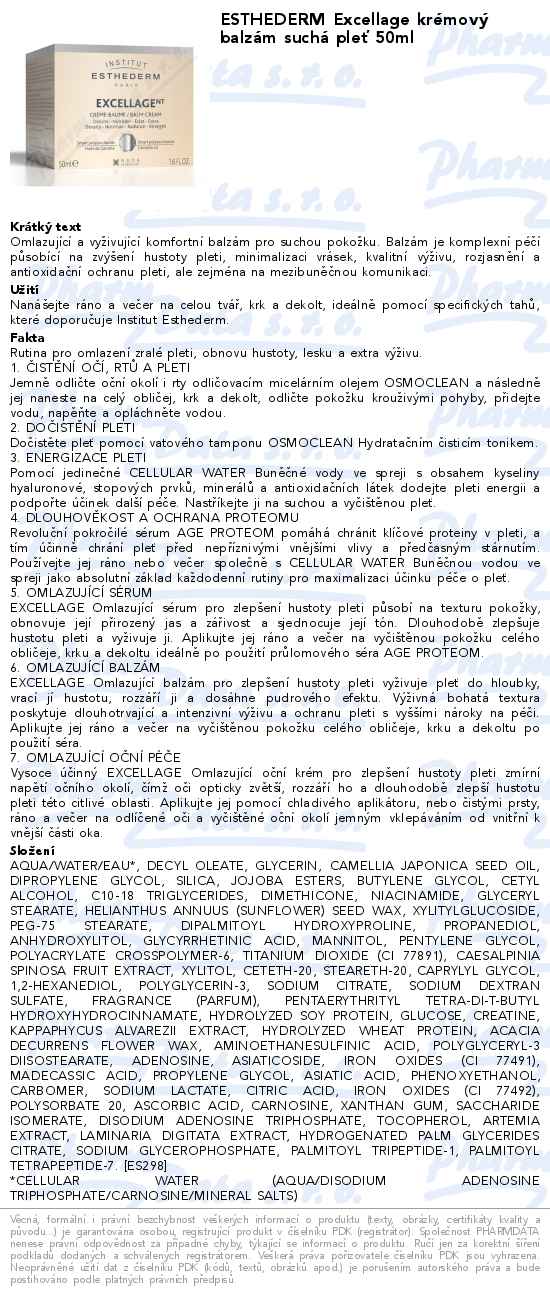 ESTHEDERM Excellage krémový balzám suchá pleť 50ml