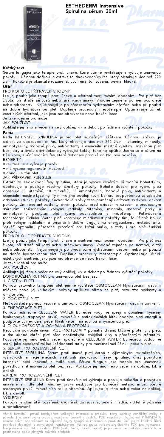 ESTHEDERM Instensive Spirulina sérum 30ml