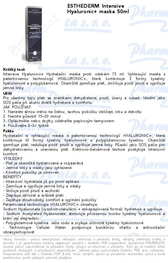 ESTHEDERM Intensive Hyaluronic+ maska 50ml