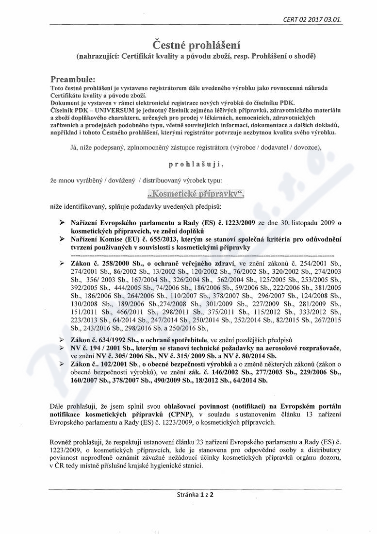 2 strany čestného prohlášení: strana 1, strana 2,