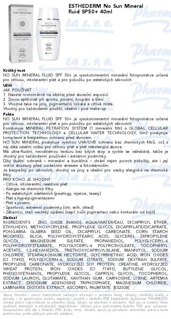 ESTHEDERM No Sun Mineral fluid SP50+ 40ml
