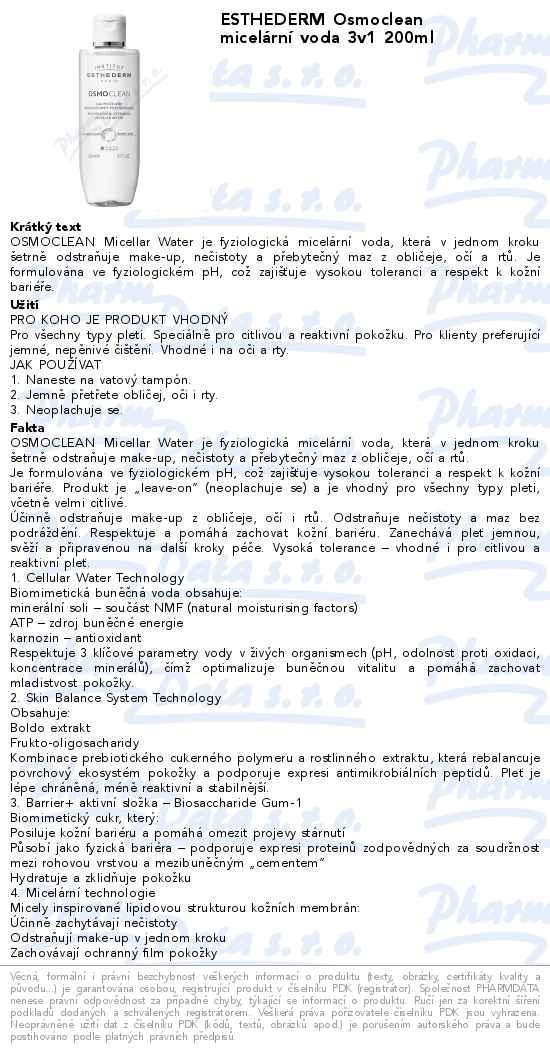 ESTHEDERM Osmoclean micelární voda 3v1 200ml