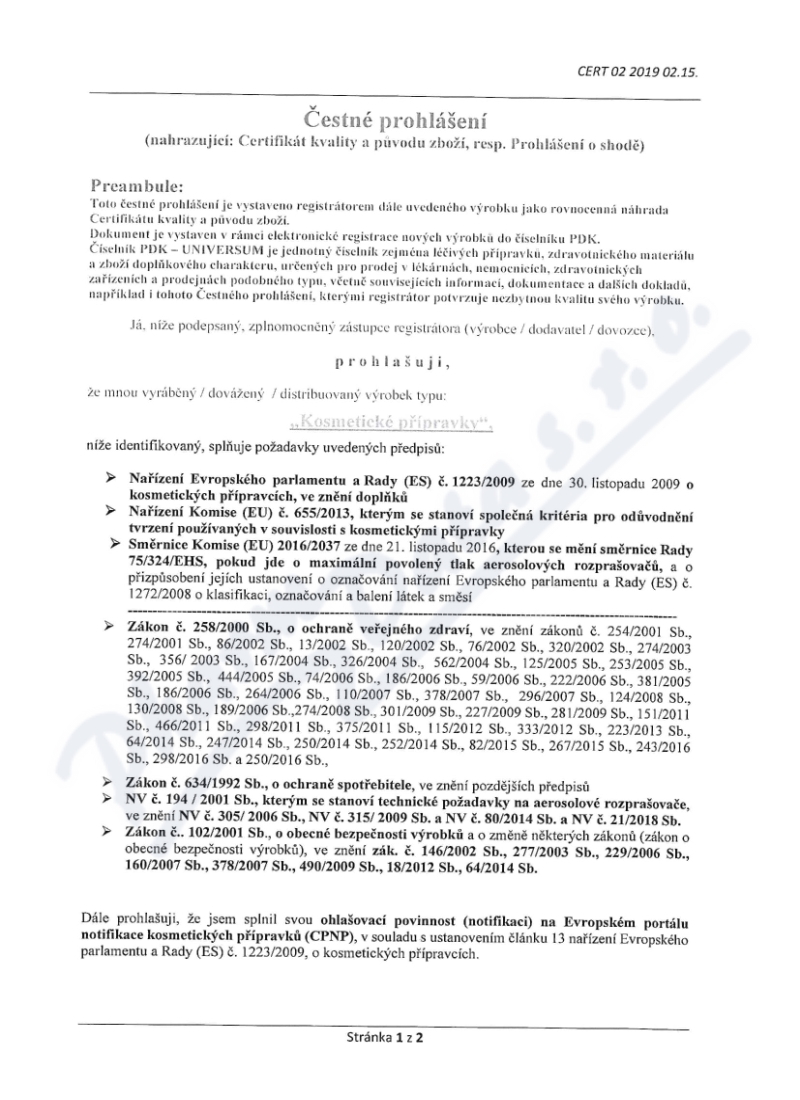 2 strany čestného prohlášení: strana 1, strana 2,