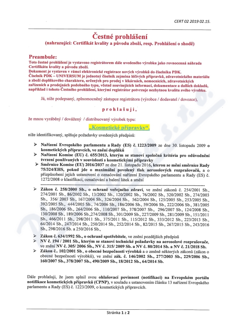 2 strany čestného prohlášení: strana 1, strana 2,