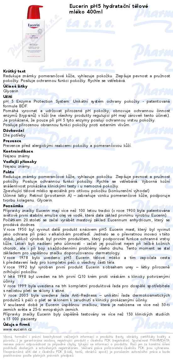 Eucerin pH5 hydratační tělové mléko 400ml