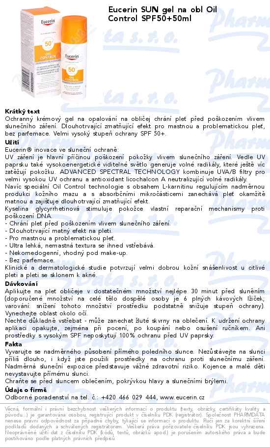 Eucerin SUN gel na obl Oil Control SPF50+50ml