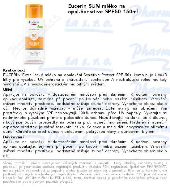 Eucerin SUN mléko na opal.Sensitive SPF50 150ml