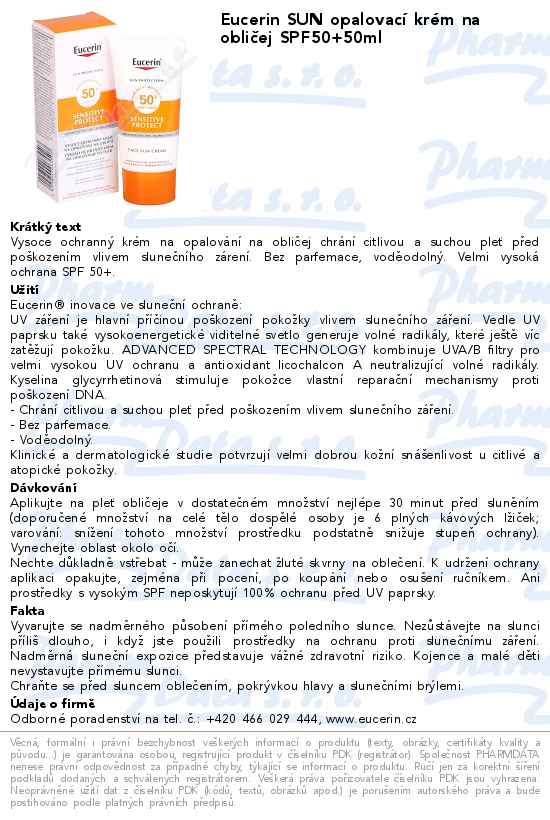 Eucerin SUN opalovací krém na obličej SPF50+50ml
