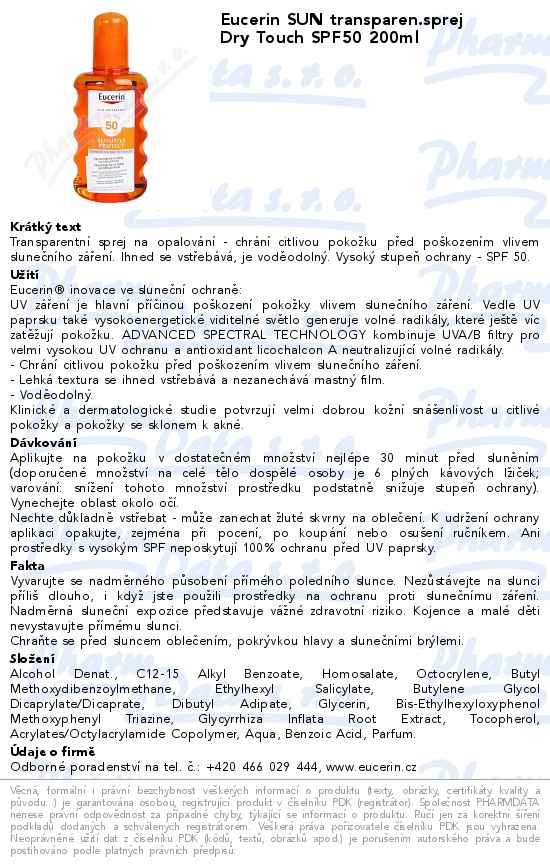 Eucerin SUN transparen.sprej Dry Touch SPF50 200ml