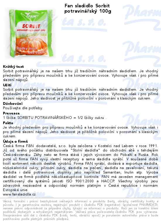 Fan sladidlo Sorbit potravinářský 100g