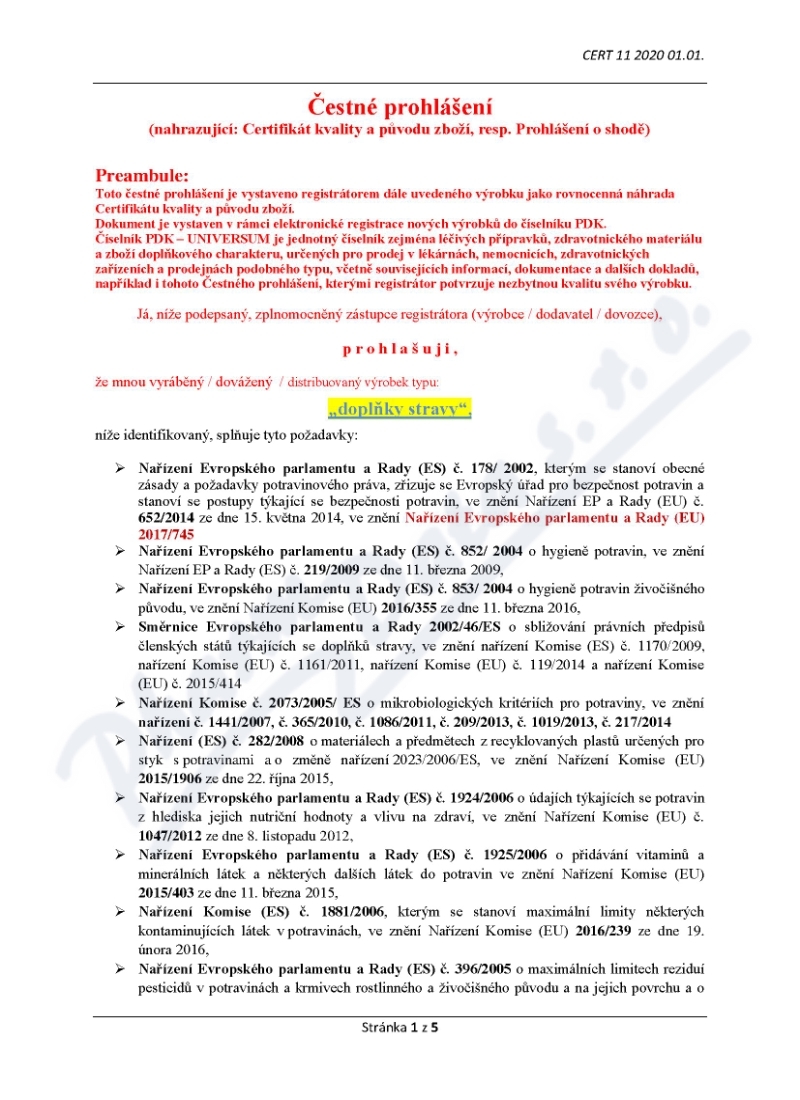 5 strany čestného prohlášení: strana 1, strana 2, strana 3, strana 4, strana 5,