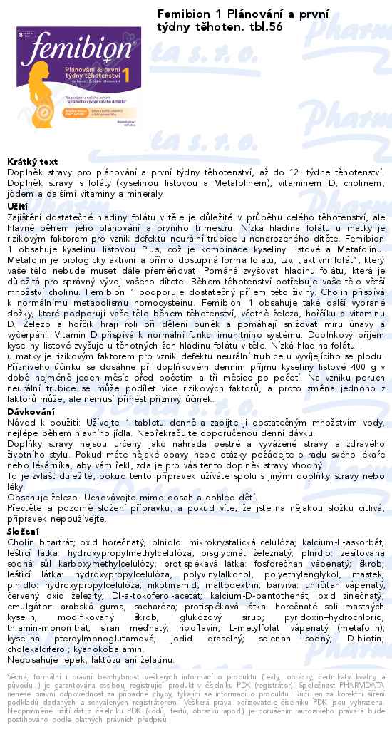 Femibion 1 Plánování a první týdny těhoten. tbl.56