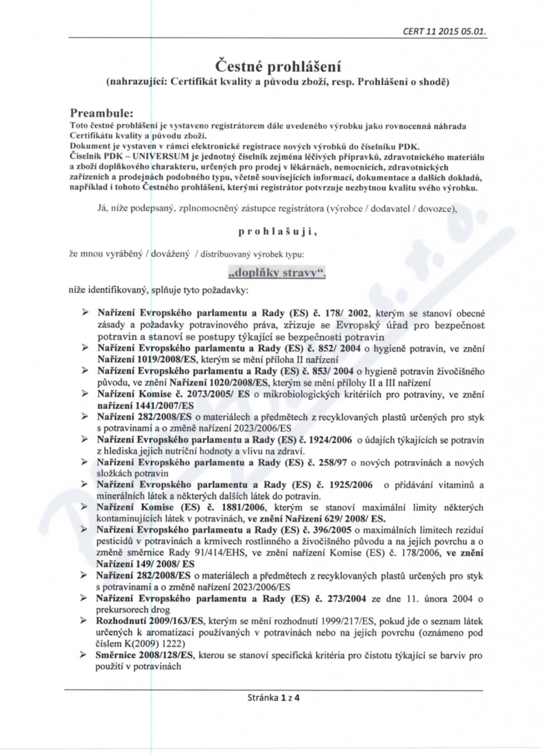 4 strany čestného prohlášení: strana 1, strana 2, strana 3, strana 4,