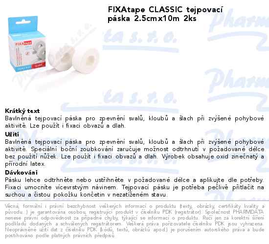FIXAtape CLASSIC tejpovací páska 2.5cmx10m 2ks