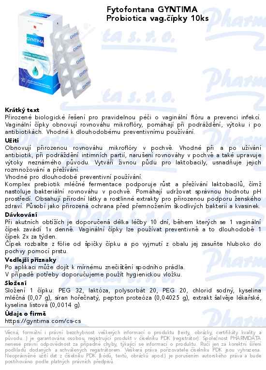 Fytofontana GYNTIMA Probiotica vag.čípky 10ks