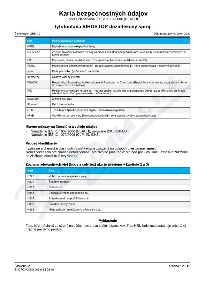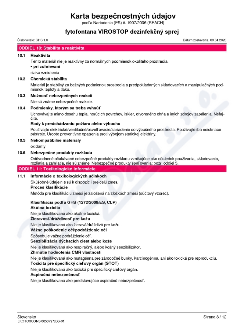 12 strany bezpečnostních listů: strana 1, strana 2, strana 3, strana 4, strana 5, strana 6, strana 7, strana 8, strana 9, strana 10, strana 11, strana 12,